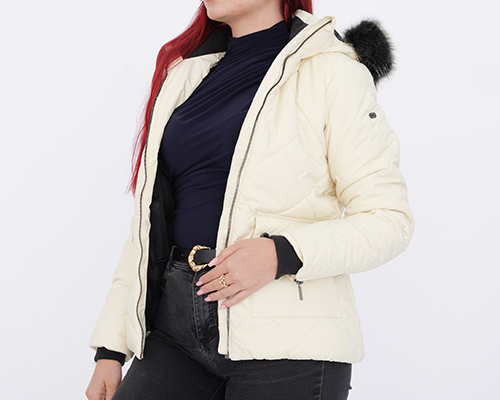 Dámská hřejivá bunda s kožíškem krémové barvy