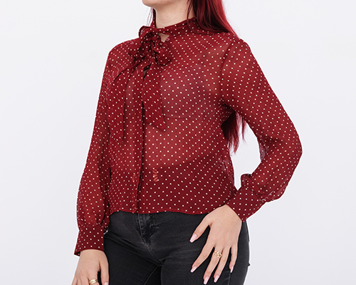 Dámská průsvitná košile s mašlí pod krkem