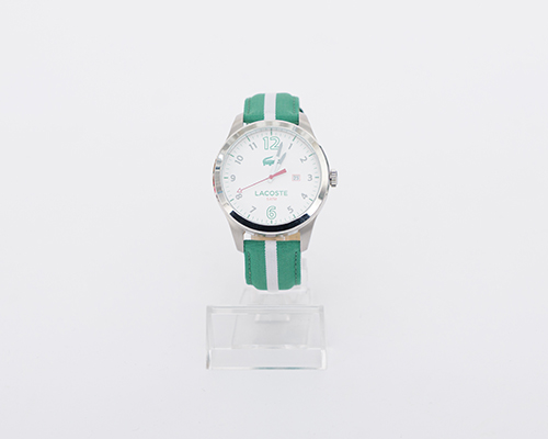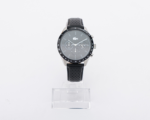 Pánské elegantní hodiny značky Lacoste s koženkovým řemínkem a černým ciferníkem